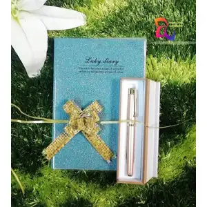 চায়না সেমি লার্জ স্পেশাল গিফট বক্স 1 গ্লিটার নোটপ্যাড, 1 কলম, 1 কলমের বাক্স, 1 টি ফিতা ফুল