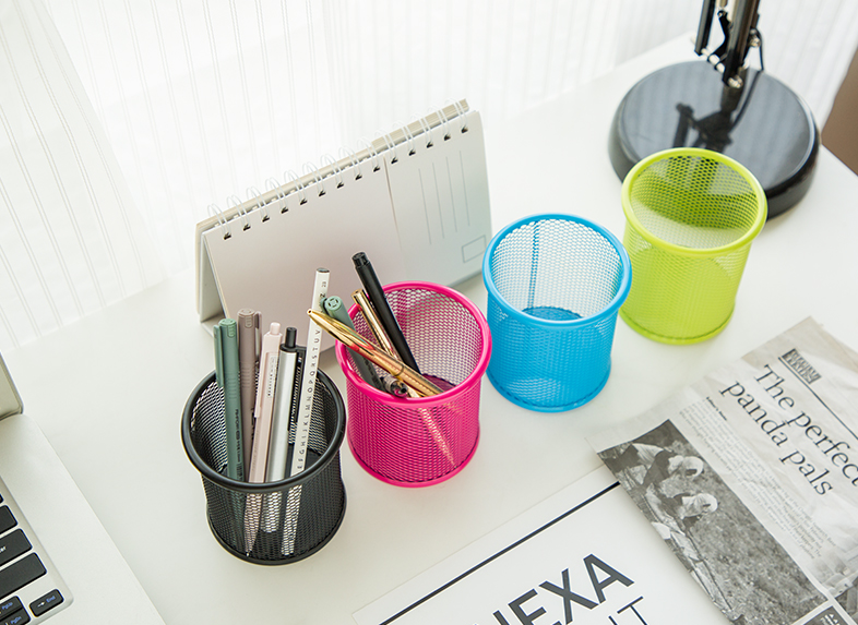 রঙিন পেন হোল্ডার ধাতব রাউন্ড মেশ পেন হোল্ডার 1 পিস