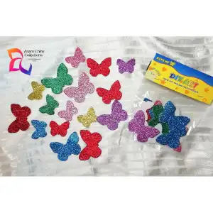 স্ব আঠালো বাটার ফ্লাই স্টিকার, ফোম গ্লিটার রঙিন বাটার ফ্লাই আকৃতির ওয়াল স্টিকার 1 প্যাকেট