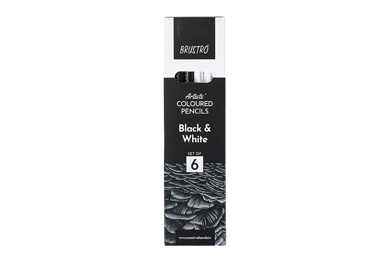 Brustro Artists Black & White Coloured Pencils Set of 3 Whites and 3 Blacks