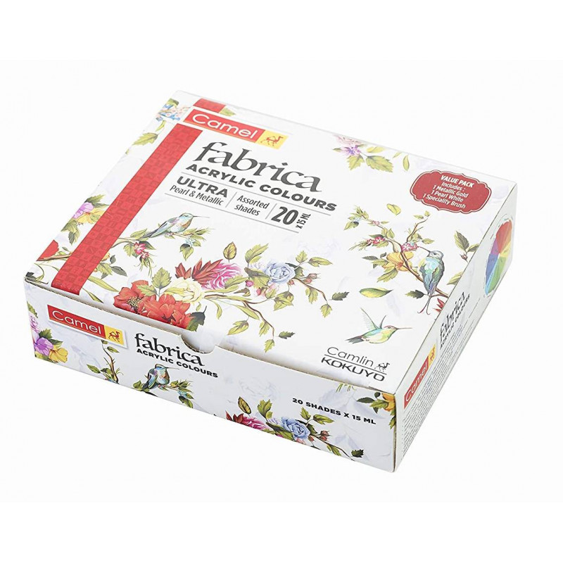 Camel ফ্যাব্রিকা এক্রাইলিক আল্ট্রা পার্ল এবং মেটালিক রঙের সেট-20 এর প্যাক - water color