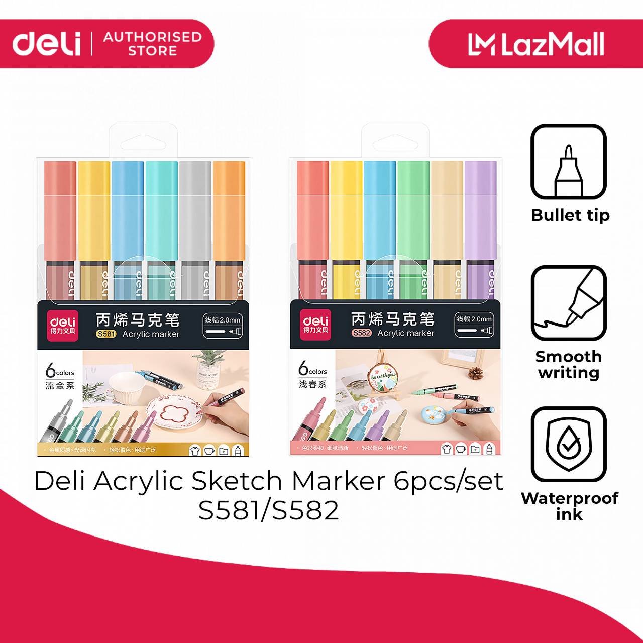 Deli S581 Metalic Acylic Marker 6 PCS SET