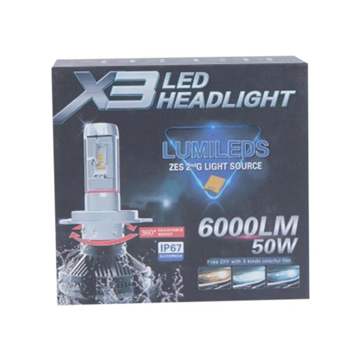H4 X2 LED Headlight for Car - Blue and Silver