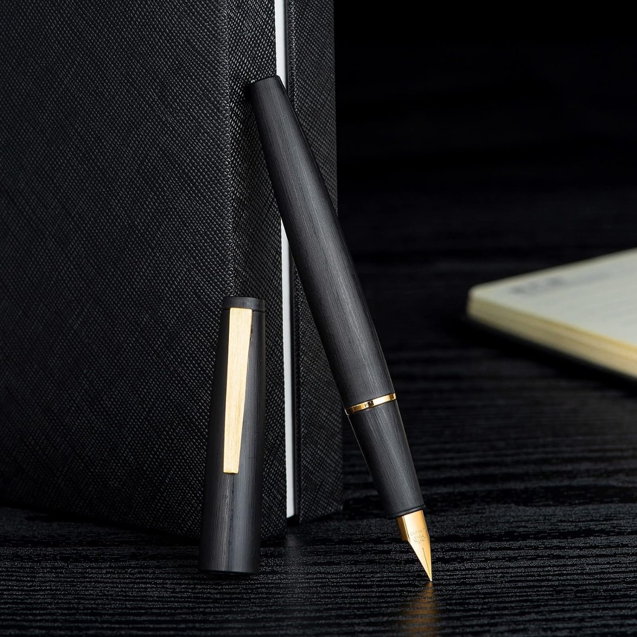 Jinhao 80 Brushed Carbon Fiber Fountain Pen 0.3mm Nib, Gray with Gold Clip Writing