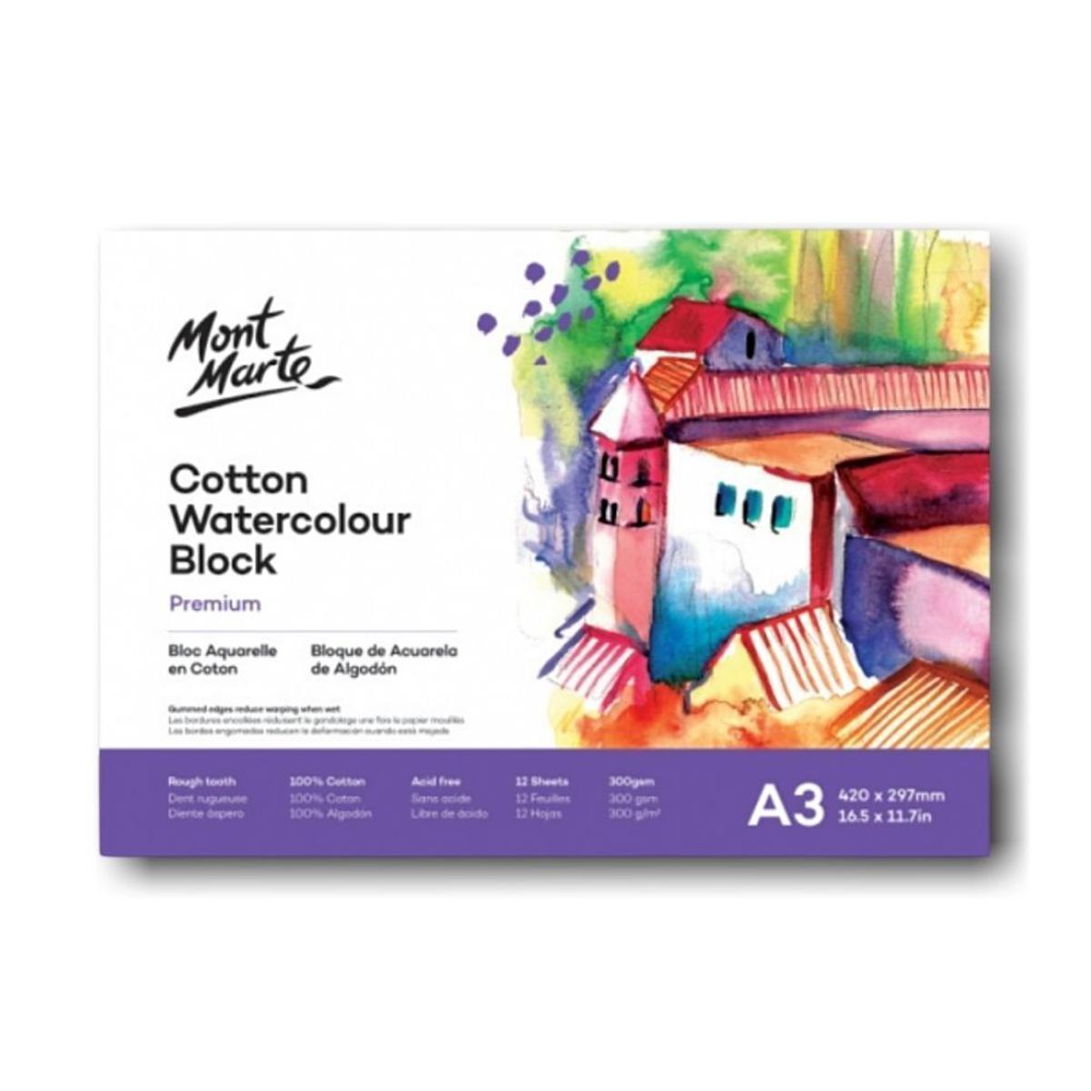 Mont Marte Premium Watercolour Block 100% Cotton A3 300gsm 12 Sheet