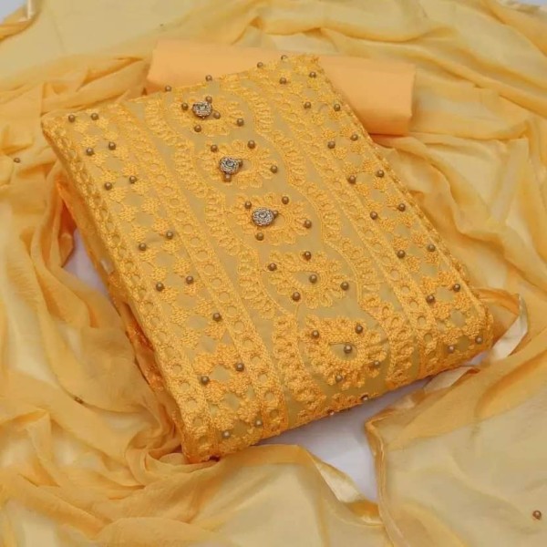 New Joypuri Color Ari Work linen Stylish Gorgeous Three Piece Shalwar Kamiz Dresses(AR-150)