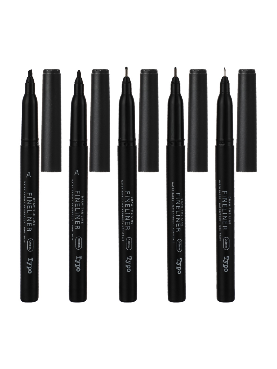 PaperTree 5 Black Fineliners Set (Round, 1.0mm, Chisel, 0.5mm, 0.2mm)